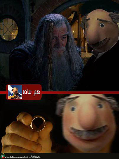 آقو ما یه بار یه حلقه ای تو خیابون پیدا کردیم،یه رفیقی داریم صداش میکنیم “گندولف”، ای حلقهو رو بردیم پیشش گفتیم کاکو ای چیه!؟ گفت ای ارباب حلقه هاس،بکنیش تو دستت غیب میشی!