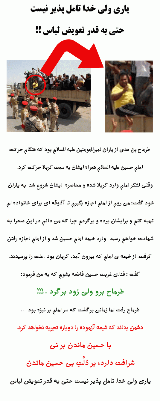 + غدیر، "کربلای عوام" بود و کربلا، "غدیر خواص" ؛ در غدیر با آنکه بیعت گرفته شد جفا شد ولی در کربلا با اینکه بیعت برداشته شد، وفا شد.